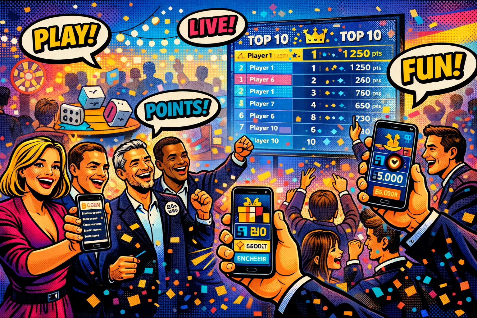 Kermesse 2.0 revisite la soirée casino en version phygitale : ateliers de jeux, défis entre collègues, points en continu et classement live sur mobile + écran. Le final bascule en vente aux enchères où les points servent à remporter des cadeaux, pour une ambiance ultra fédératrice.