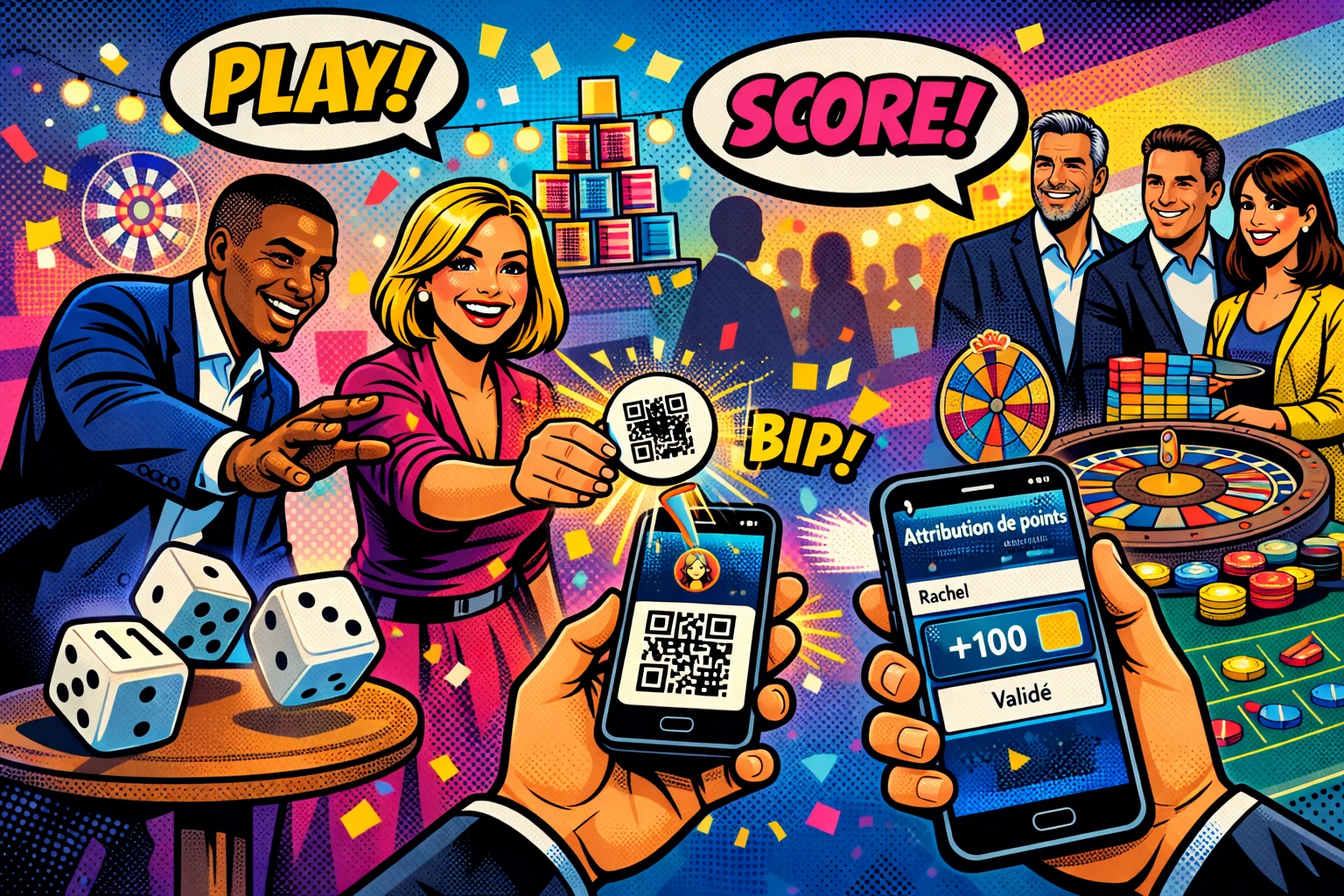Kermesse 2.0, c'est la soirée qui secoue les codes du team building. Un mix détonnant entre casino, kermesse et digital… sans jamais perdre l'essentiel : le fun, l'échange et l'ambiance.
