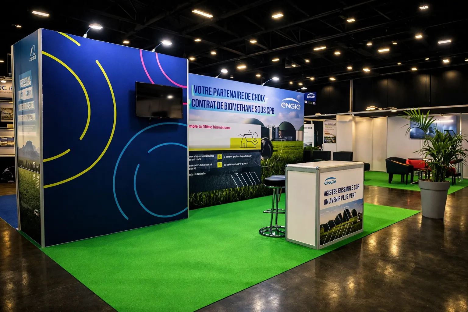 BIO360, l'un des salons professionnels majeurs dédiés à la transition écologique, réunit chaque année des centaines d'exposants à Nantes. Pour cette édition, iDkom s'est vu confier un défi logistique et créatif de grande envergure : concevoir, produire et installer 38 stands clé en main, en accompagnant chaque exposant de A à Z — de leur brief graphique jusqu'au moment où leurs commerciaux posent le pied sur le salon.